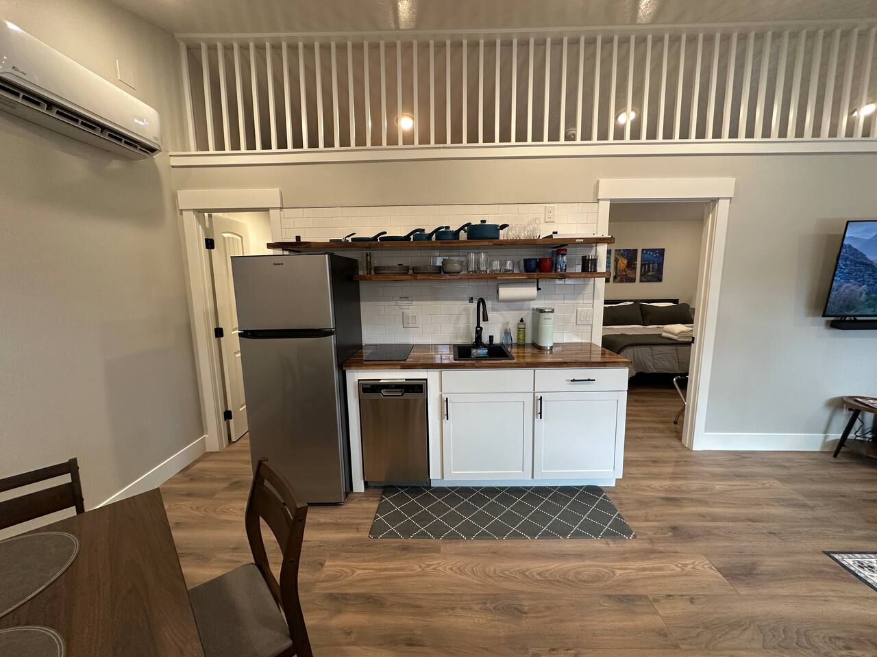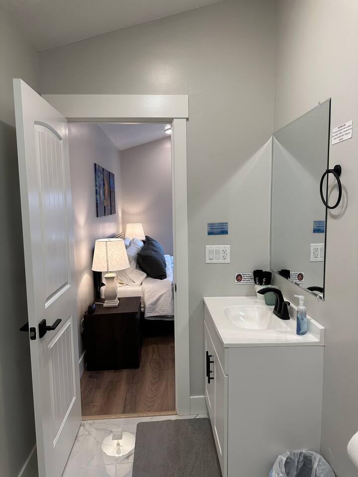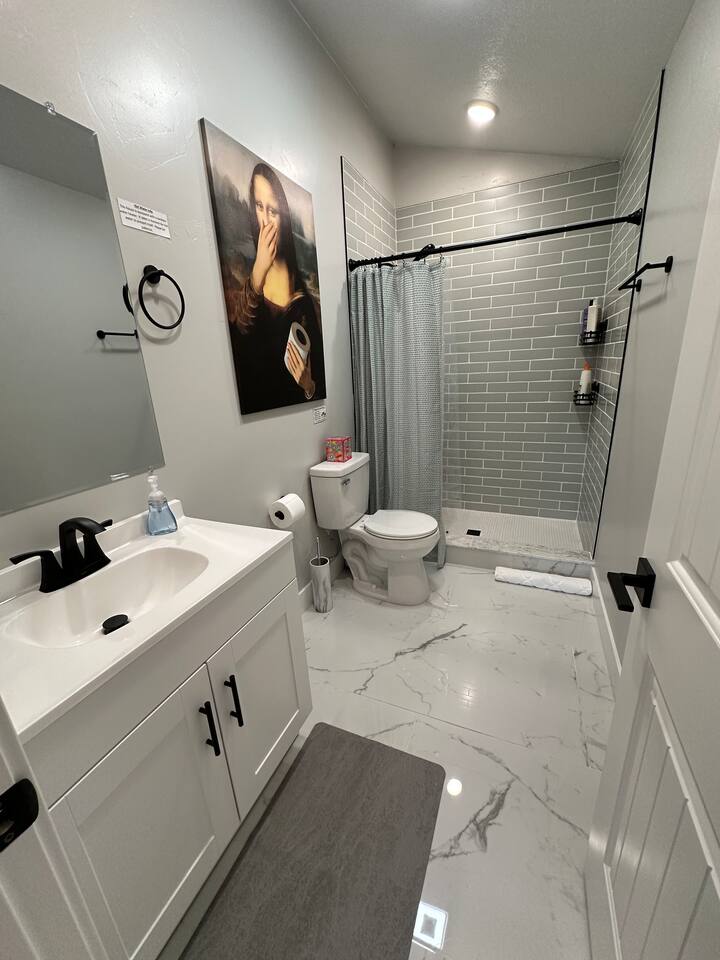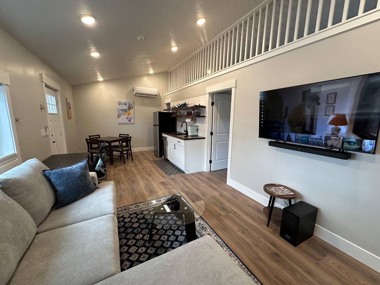 Enjoy comfort and convenience in this brand-new space featuring a king-size memory foam mattress for restful nights, and a 55" Smart TV with Sony surround sound for an immersive entertainment experience. The dedicated workspace with a height-adjustable standing desk and ergonomic office chair ensures productivity. The kitchen is outfitted with a two-burner cooktop and an air fryer since there is not an oven for all your cooking needs. Stay comfortable year-round with the Mini Split heating and cooling system, and enjoy fast, reliable WiFi. With great restaurants, grocery stores, and public transportation (TRAX) just minutes away, everything you need is at your fingertips!